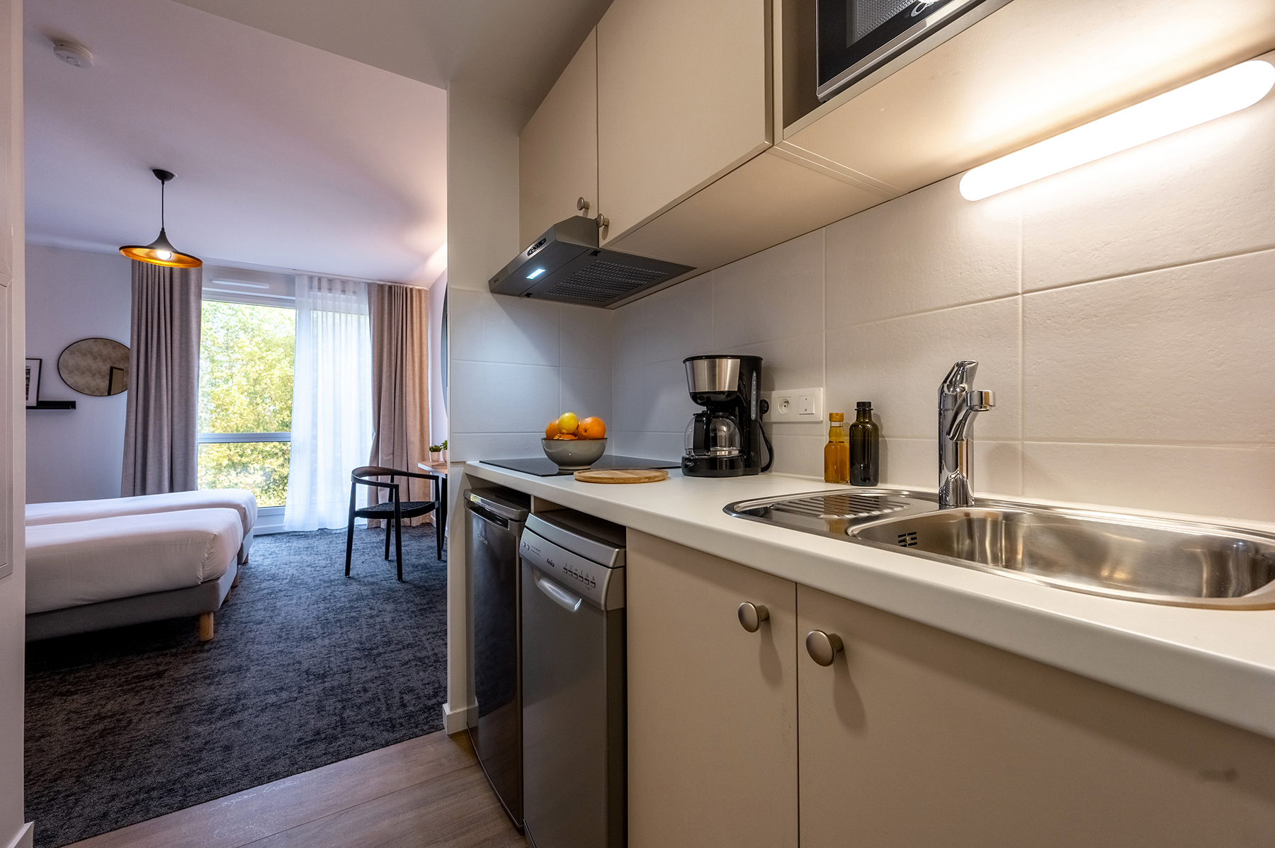 Das Aparthotel in Pessac, unweit der Universität, verfügt über moderne und funktionale Unterkünfte, die so gestaltet sind, dass sie Ihnen während Ihres gesamten Aufenthalts Komfort und Unabhängigkeit zu garantieren. Die Kunden können auch vor Ort ein Frühstück zu genießen, um den Tag gut zu beginnen. Vom gemütlichen Studio für zwei Personen bis hin zur geräumigeren Wohnung, die Platz für bis zu vier Personen bietet. Jede Unterkunft verfügt über ein eigenes Badezimmer und einen voll ausgestatteten Küchenbereich. Genießen Sie eine ruhige Nacht in Ihrem Zimmer und nutzen Sie von den zahlreichen Einrichtungen, die das Aparthotel La Boëtie Bordeaux Pessac für ein noch angenehmeres Erlebnis bereitstellt, wie ein beheiztes Hallenbad, einen Fitnessraum und vieles mehr. Für Ihre praktischen Bedürfnisse stehen ein gesicherter Parkplatz sowie ein spezieller Fahrradstellplatz zur Verfügung, um Ihre Fahrten während Ihres gesamten Aufenthalts – von der Ankunft bis zum Check-out – zu erleichtern.